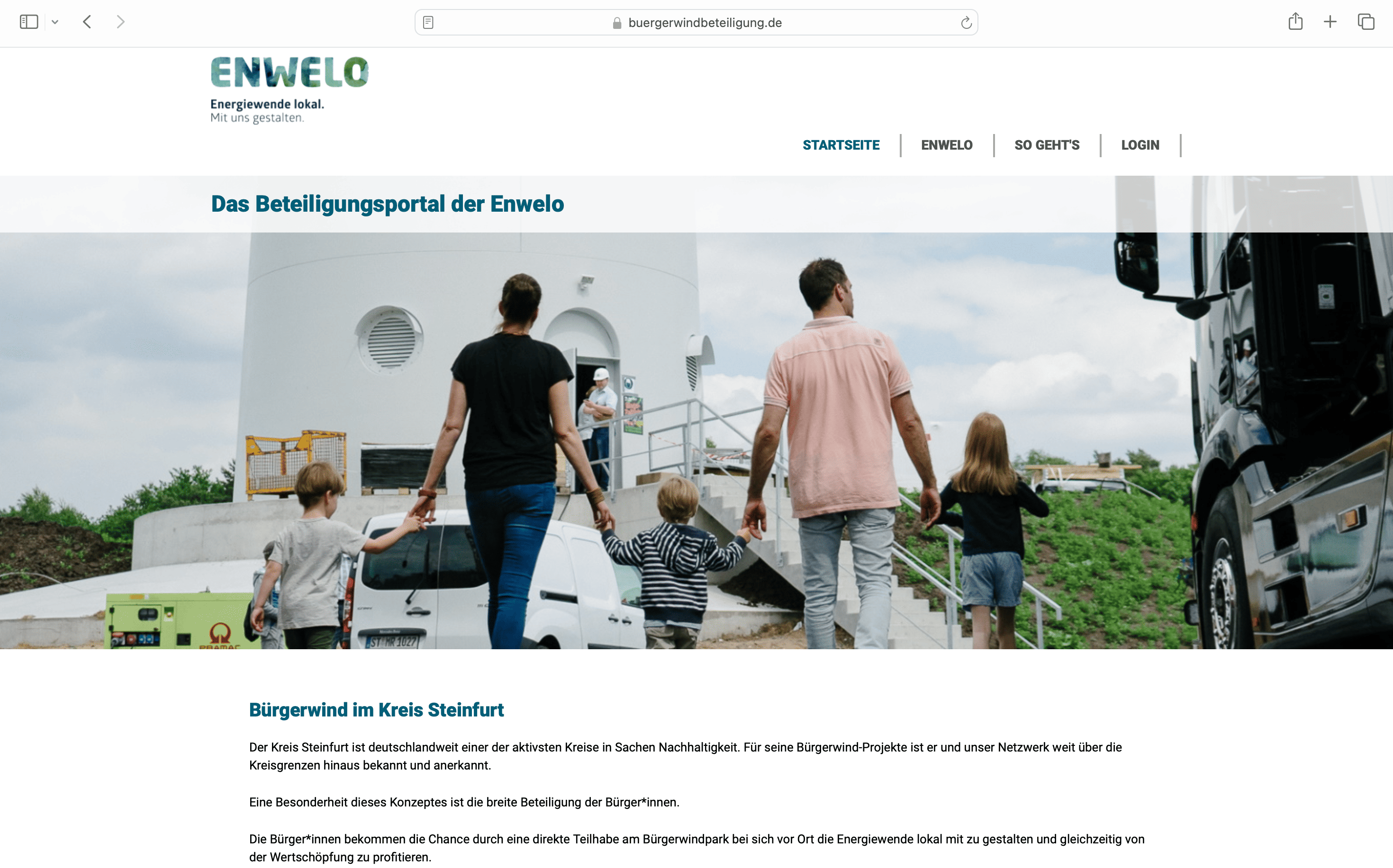 Durch die langjährige und intensive Zusammenarbeit mit Bürgerwindparks wissen wir genau, wie wir Ihren Bedarf ergänzen können. So können wir Sie bei allen Aufgaben rund ums Thema Beteiligung zielgerecht unterstützen. Eine ausführliche Übersicht aller Leistungen und Funktionalitäten bekommen Sie gerne von uns.